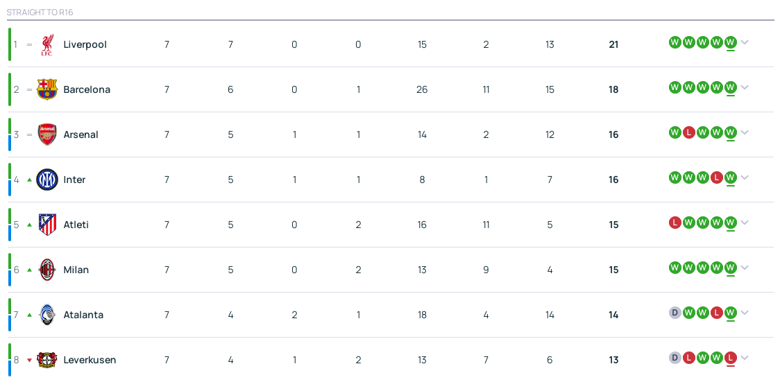 已经直接晋级16强的队伍依然只有2支,是在第1比赛日获胜的利物浦和巴萨,第2比赛日获胜的阿森纳和国米同积16分,分列积分榜第三第四位,两队均是末轮不败即可直接晋级16强皇冠信用网网址。