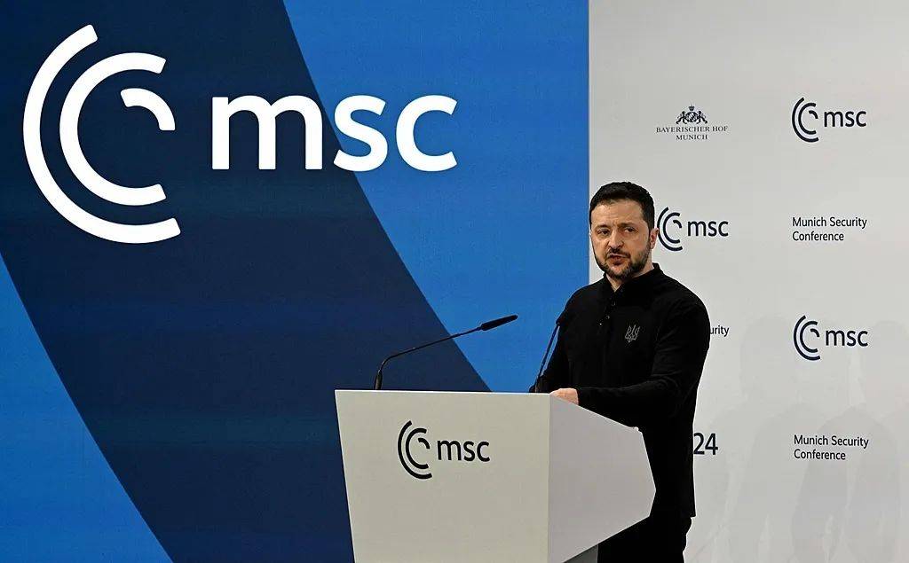 当地时间2025年2月15日,德国慕尼黑,第61届慕尼黑安全会议上,乌克兰总统弗拉基米尔·泽连斯基发表讲话皇冠电竞足球。视觉中国 图