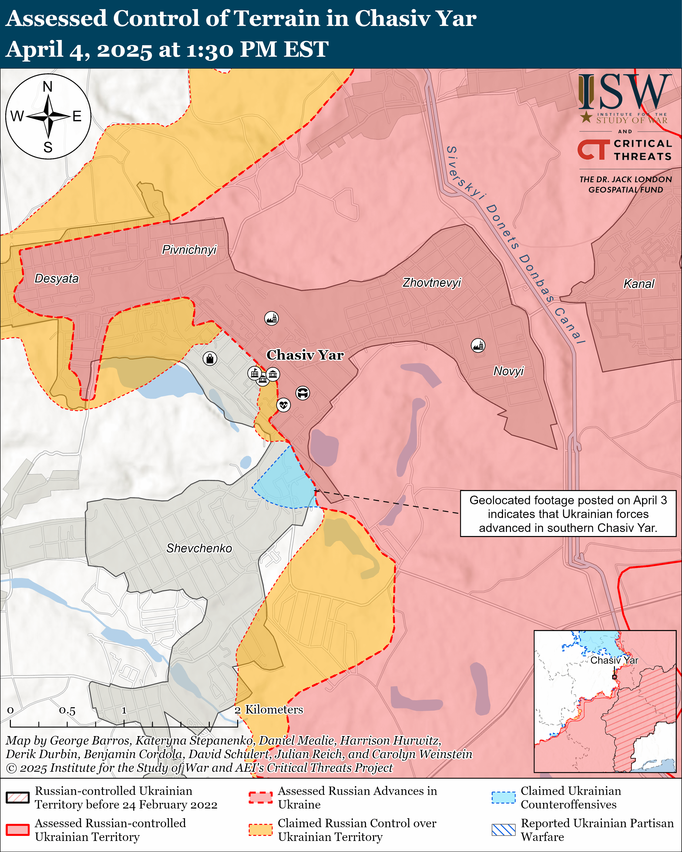 乌克兰军队在查西夫亚尔方向取得了明显进展皇冠信用網网址 。根据4月3日发布并在4月4日确认的地理定位画面,乌军已推进至查西夫亚尔南部的第聂伯罗夫斯卡街,增强了对这一战略要地的控制。