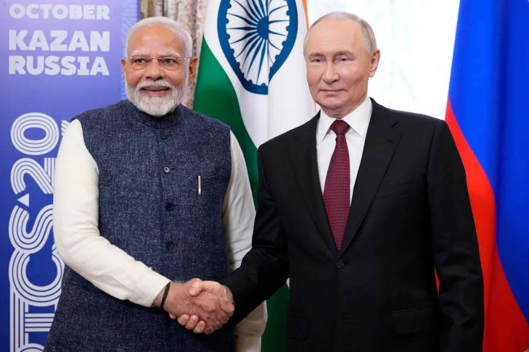 ▲资料图片:2024年10月22日,俄总统普京(右)与印度总理莫迪在出席俄罗斯喀山金砖峰会期间举行会晤皇冠信用盘开户 。(美联社)