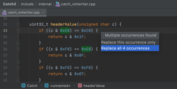 重命名符号,内联函数、变量或宏,在层次结构中移动成员,更改函数签名,以及提取函数、变量、参数或 typedef正版皇冠信用网代理。 无论您使用哪种自动重构,都请放心,CLion 能够安全地在整个代码中传播相关变更。