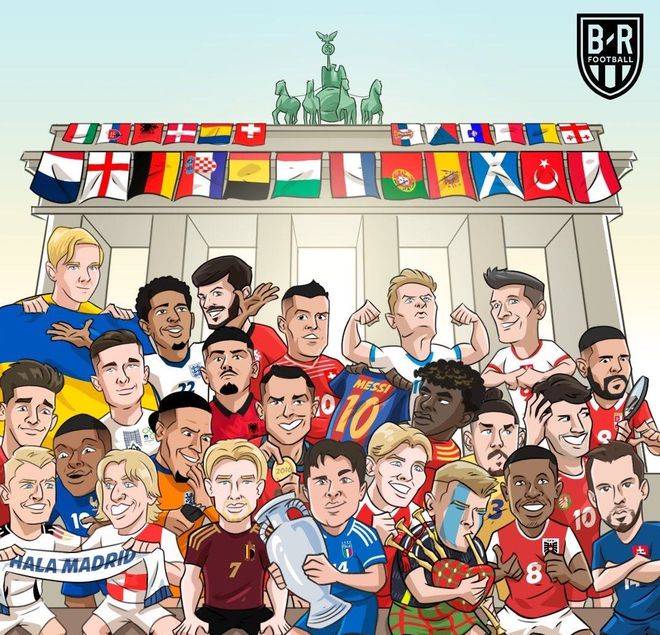 还有一些亮点欧洲杯赛程。虽然欧洲杯是国家队赛事,但却出现了一些俱乐部元素。第一个是梅西的巴萨球衣亮相,被西班牙的巴萨天才亚马尔举着,用的是梅西当年读秒绝杀皇马的名场面,而梅西的巴萨球衣对着的球员,正好是C罗。不知道这是媒体有意设计还是无心之举。另一个俱乐部元素是皇马,莫德里奇和克罗斯举着皇马的标语,后面的法国老大姆巴佩看得眼睛都瞪大了,因为姆巴佩下赛季就要加盟皇马。